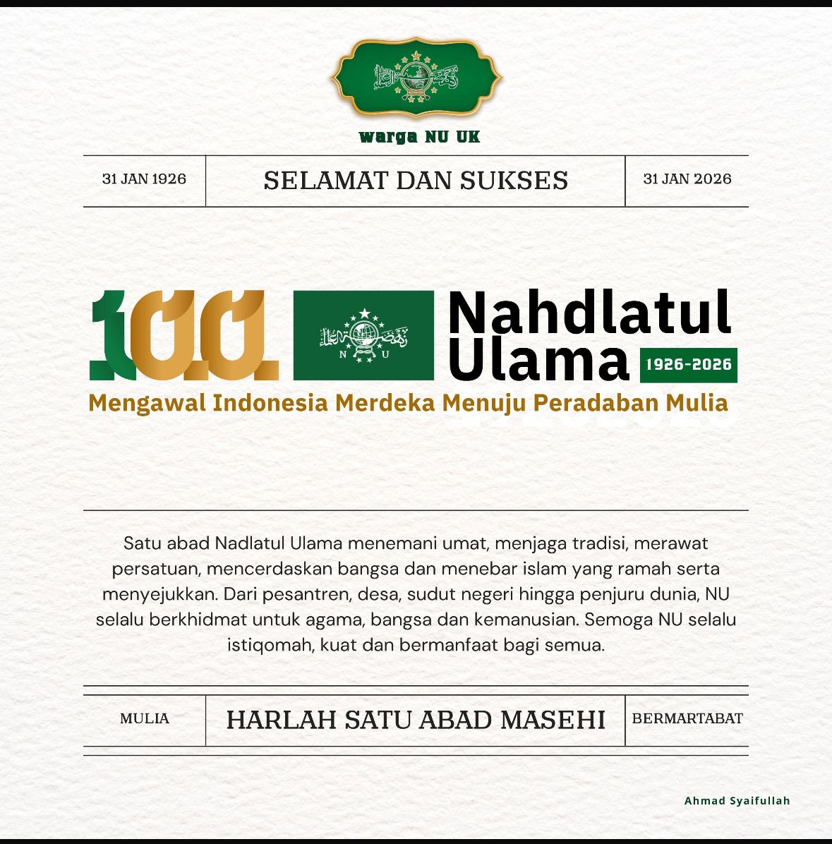 Menyambut seabad masehi NU