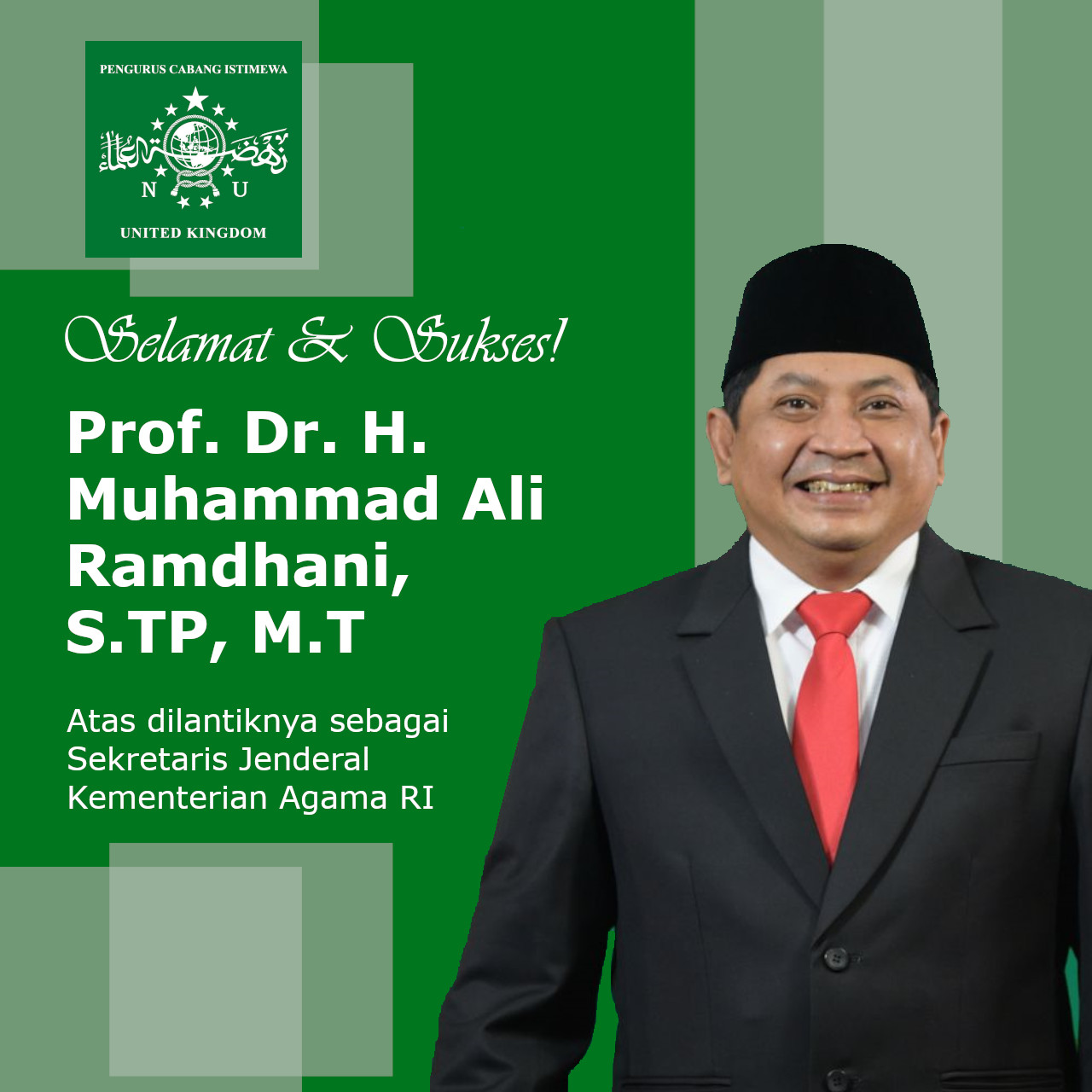 Kami segenap Keluarga Besar PCINU United Kingdom mengucapkan selamat kepada Prof. Dr. Muhammad Ali Ramdhani, S.TP, M.T atas dilantiknya sebagai Sekretaris Jenderal Kementerian Agama RI.