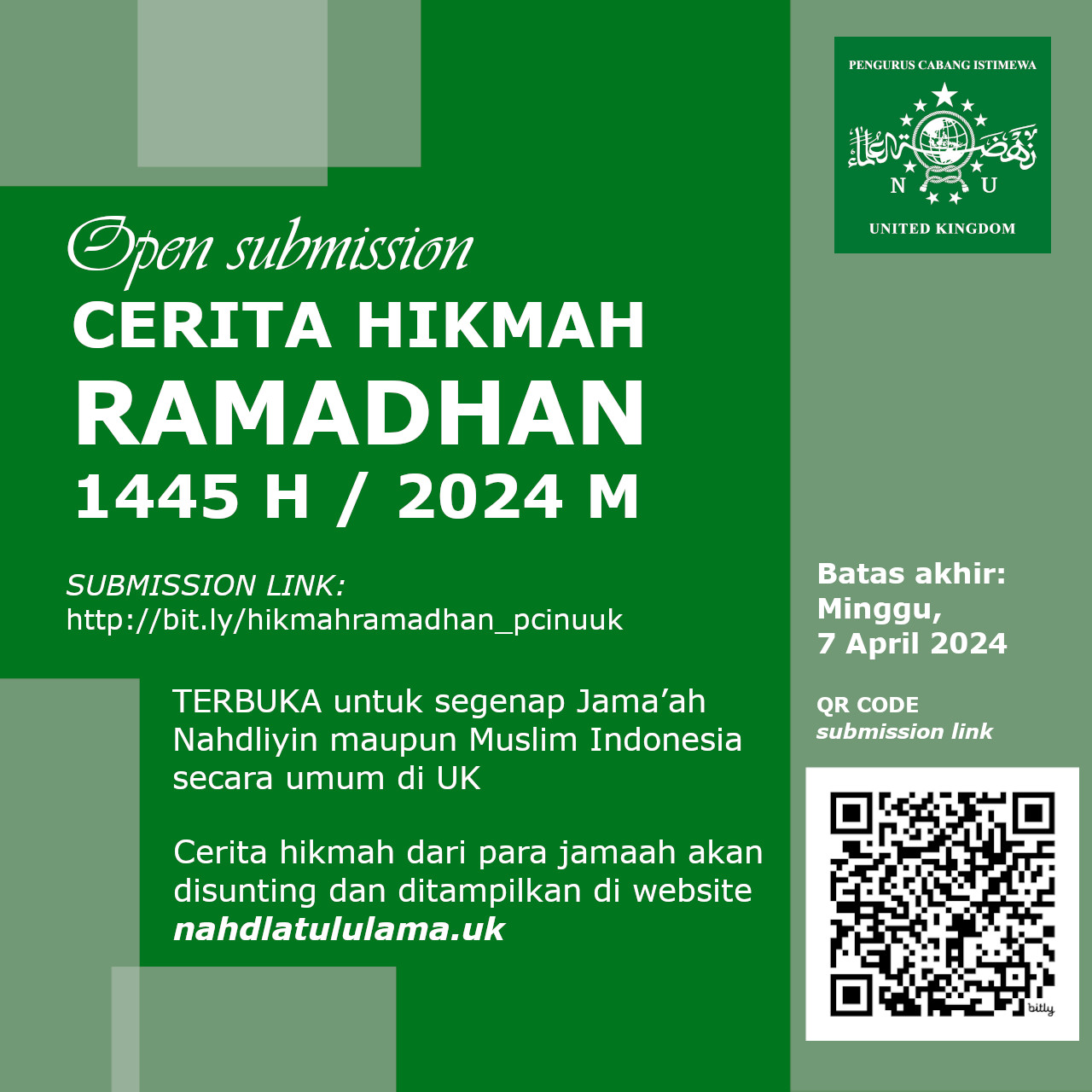[…] jamaah yang ingin berbagi kisahnya, silahkan kirim melalui tautan ini (OPEN SUBMISSION). Hikmah Ramadhan ini terbuka untuk semua umat Muslim (tidak terbatas pada jamaah Nahdlyin) di UK […]